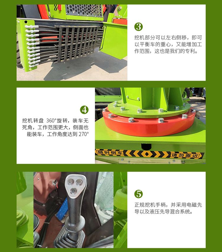 便于操縱的挖掘動臂鎖定機構和挖掘裝置過中點的特殊設計,使設備運輸更 安全,行駛更平衡。